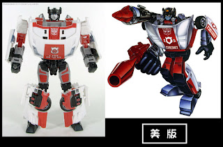 美版的紅色警戒(Red Alert)是照1984年的玩具版上色,頭部是黑色,